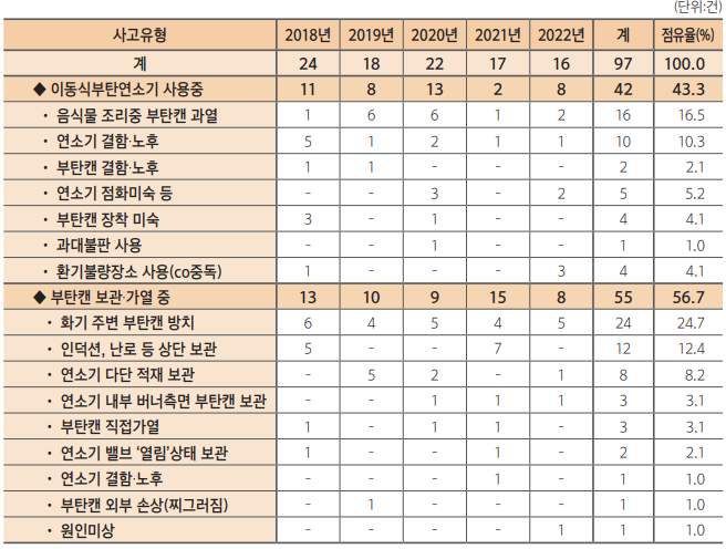 참고자료- [2022 가스사고 연감] 이동식부탄연소기/부탄캔 사고분석